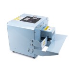 Zváračka môže do zvaru vyraziť textové alebo číselné informácie podľa vášho výberu. Do kruhového razidla možno vložiť 18 znakov v troch riadkoch, ako zarážky alebo medzery slúži silikónová gumička, ktorá je súčasťou balenia. Znaky sa do dierovača vkladajú ručne a pri zmene textu je potrebné dierovač vždy vybrať (uvoľniť dve skrutky) a znaky vymeniť. Súčasťou balenia je aj sada znakov, ktorá obsahuje čísla a znaky. V prípade potreby je možné zakúpiť ďalšiu náhradnú sadu. Text sa vždy vyrazí priamo do zvaru, ktorý je široký 10 mm. Tlač je vždy umiestnená v mieste zvaru, ale horizontálnu polohu možno podľa potreby upraviť pomocou ovládacieho kolieska, ktoré posúva čas začiatku tlače. Snímač rozpozná obal a potom spustí tlač, ale nastavením oneskorenia možno tlač podľa potreby posunúť ďalej od okraja.