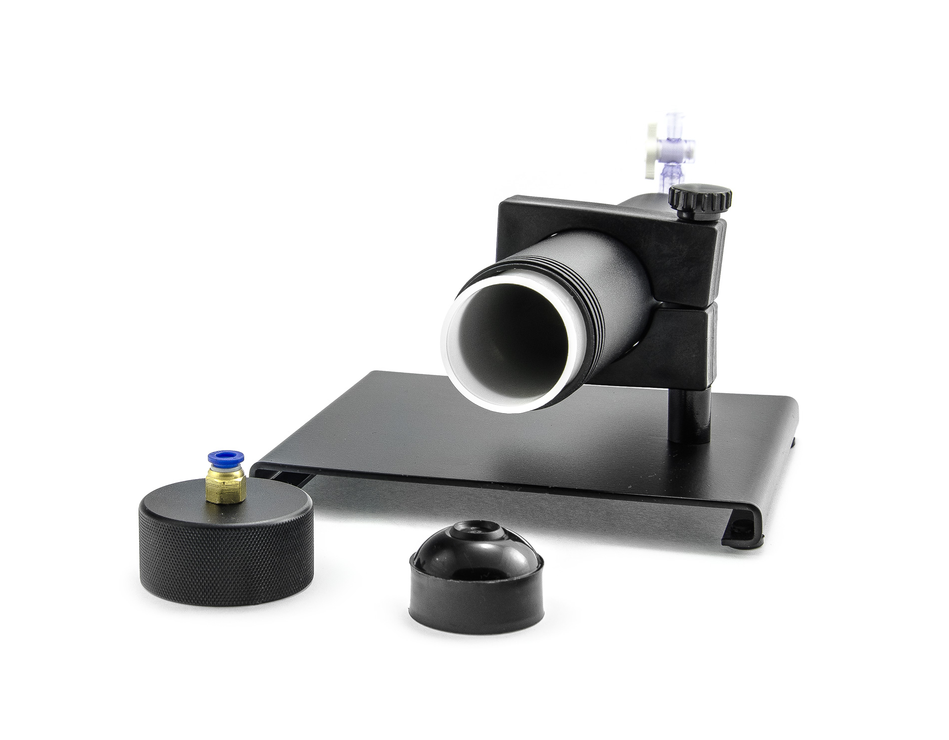 Plnička kartuší sa dodáva kompletná - súčasťou balenia je kovový stojan, kovové puzdro kartuše vrátane skrutkovacieho uzáveru s tesnením a konektorom JG 1/4", samotná 355 ml kartuša s piestom, koleno s ventilom luer-lock a uzávery na špičku a koniec kartuše na uchovávanie dávkovaných kvapalín na ďalšie použitie.