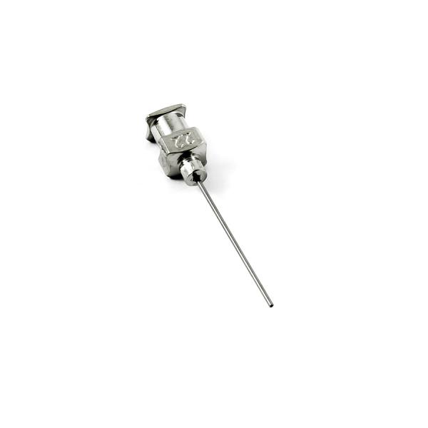 Tupé celokovové aplikačné ihly s dĺžkou kanyly 25,4 mm (1") pre presné dávkovanie kvapalín strednej viskozity až k veľmi viskóznym. Ideálny dávkovací hrot pre robotizované nanášanie pri tlaku do 6,8 baru. Telo i náboj ihly je vyrobené z nehrdzavejúcej ocele a v ňom je osadená kapilára z ušľachtilej rafinovanej ocele. Pri výrobe je kladený dôraz na kvalitu povrchu a presné dodržanie vnútorných priemerov ihly a preto je povrch kapiláry elektrolyticky leštený.