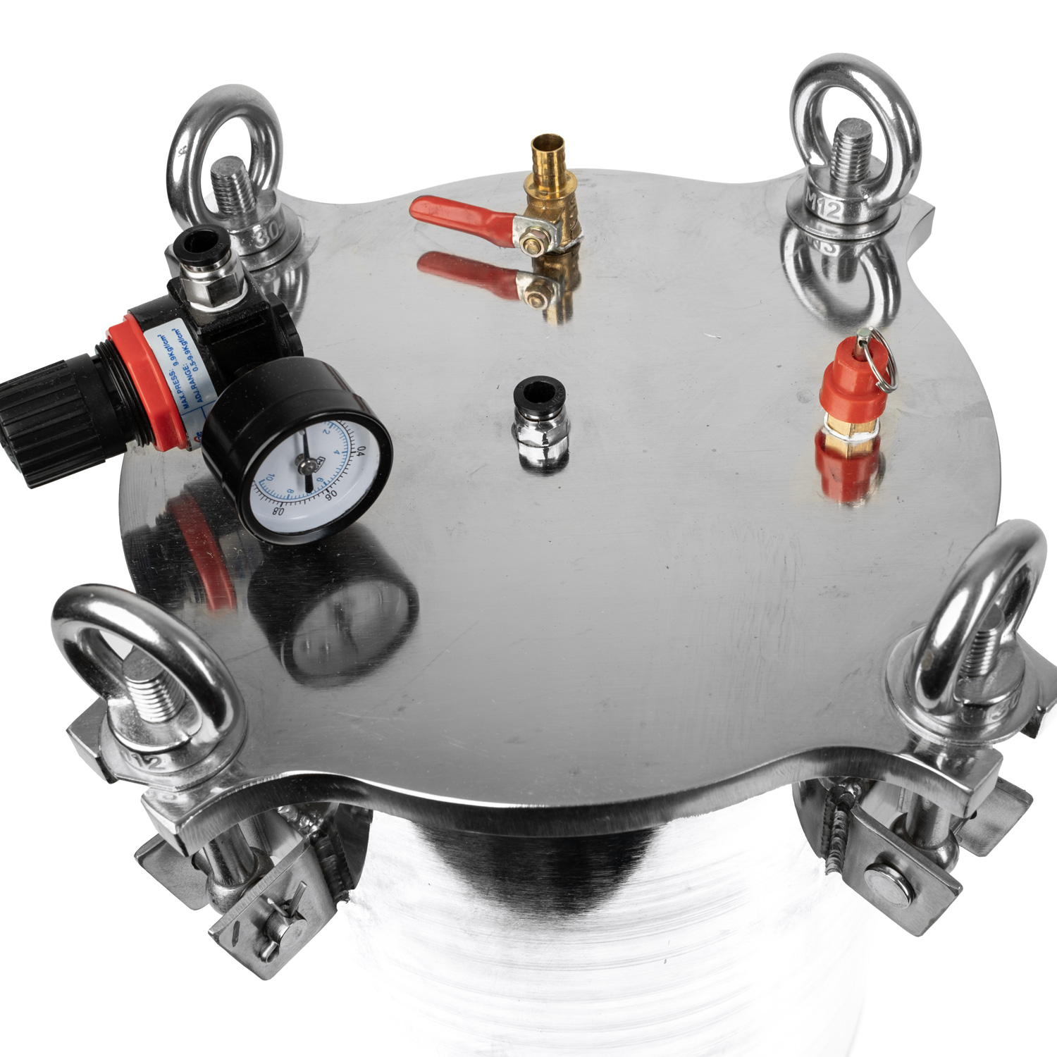 Rýchloupínacia príruba na vstupe aj výstupe tlakovej nádoby je kompatibilná so systémami konektorov John Guest 5/16" a európskymi 8 mm potrubiami. Cez výstupný otvor možno pretlačiť hadicu a ústie hadice spustiť na dno tlakovej nádoby. Tlaková nádoba je vybavená poistným ventilom, manometrom a regulátorom tlaku. Tesné uzavretie zabezpečujú 4 robustné skrutky, ktoré pevne držia veko na mieste. Otváranie nádoby nie je zložité ani časovo náročné, stačí mierne uvoľniť skrutky a zosunúť ich z veka. Nádoba je hermeticky uzavretá, čo zabraňuje odparovaniu dávkovaných materiálov a ich kontaminácii.