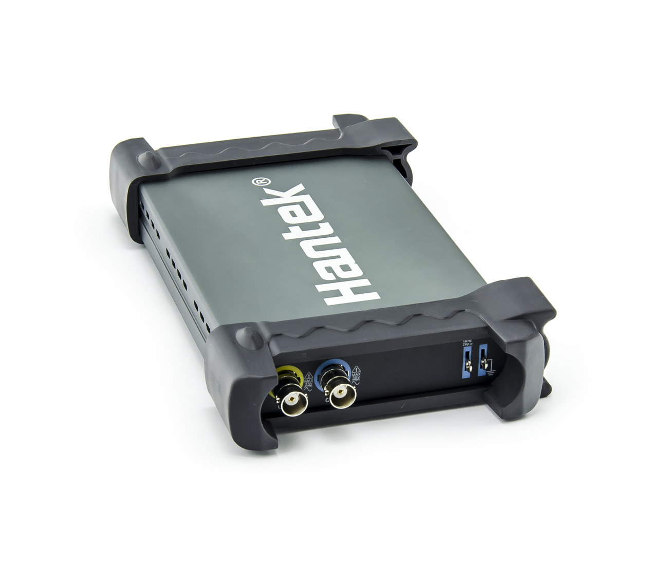 Digitálny dvojkanálový USB osciloskop Hantek 6022BE so šírkou pásma 20 MHz, vzorkovacou rýchlosťou 48 ms/s v jednokanálovom režime a pamäťou na vzorkovanie 10 K v robustnom hliníkovom vyhotovení s gumovými chráničmi, ktoré chránia osciloskop aj v náročných podmienkach.