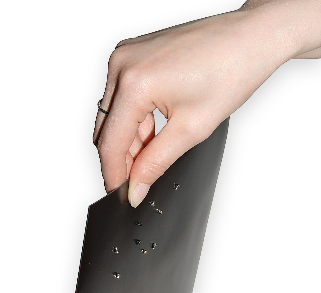 Sada obsahuje šesť obojstranných páčidiel zo špeciálneho karbónového plastu, ktorý je odolný voči vyšším teplotám a je antistatický. Vďaka použitiu plastu nepoškodíte kovové diely, ako tomu môže byť pri kovových páčidlách. Sada obsahuje tiež kovové obojstranné páčidlá, ktoré nájdu uplatnenie tam, kde je potreba k rozovretiu dielu použiť hrubšej sily. Okrem páčidiel sa v sade nachádzajú aj klasické "trsátka" pre rozlepenie touchscreen. Či už potrebujete rozobrať mobilný telefón alebo tablet, táto sada obsahuje všetko potrebné.
