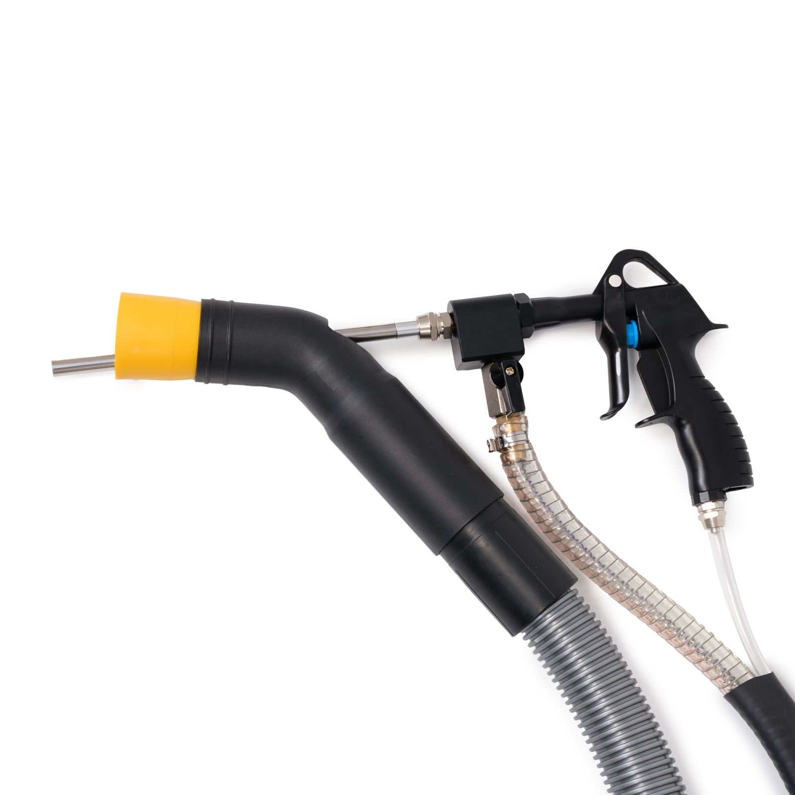 Integrovaný vákuový systém zariadenia zároveň nasáva abrazívum späť.