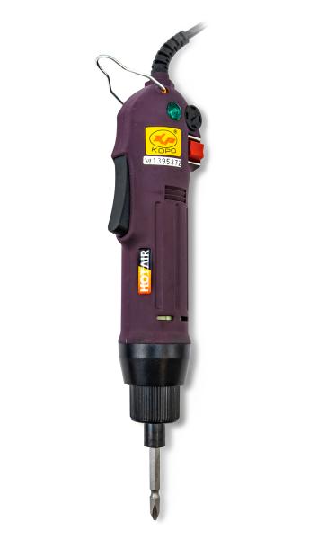 vysokokvalitný elektrický momentový skrutkovač KOPO - 622 s rozsahom krútiaceho momentu 0,2-2,5 Nm, otáčky do 900 ot/min, upínacia hlava skrutkovača je určená pre šesťhranné bity 6,35 HEX. Sila krútiaceho momentu je nastaviteľná pomocou otočnej pružinovej spojky. Výrazne počuteľné a citeľné preskočenie pri dosiahnutí nastaveného uťahovacieho momentu. spínač motora je integrovaný v rukoväti pre lepšiu ergonómiu pri práci. Kolískový spínač na telese prístroja umožňuje zmenu smeru otáčania. skrutkovač je napájaný zo siete 230 V/50 Hz prostredníctvom napájacieho kábla s dĺžkou 1,75 m. Očko na tele skrutkovača na upevnenie k vyvažovačke. Telo prístroja je potiahnuté protišmykovou vrstvou pre väčší komfort pri práci.