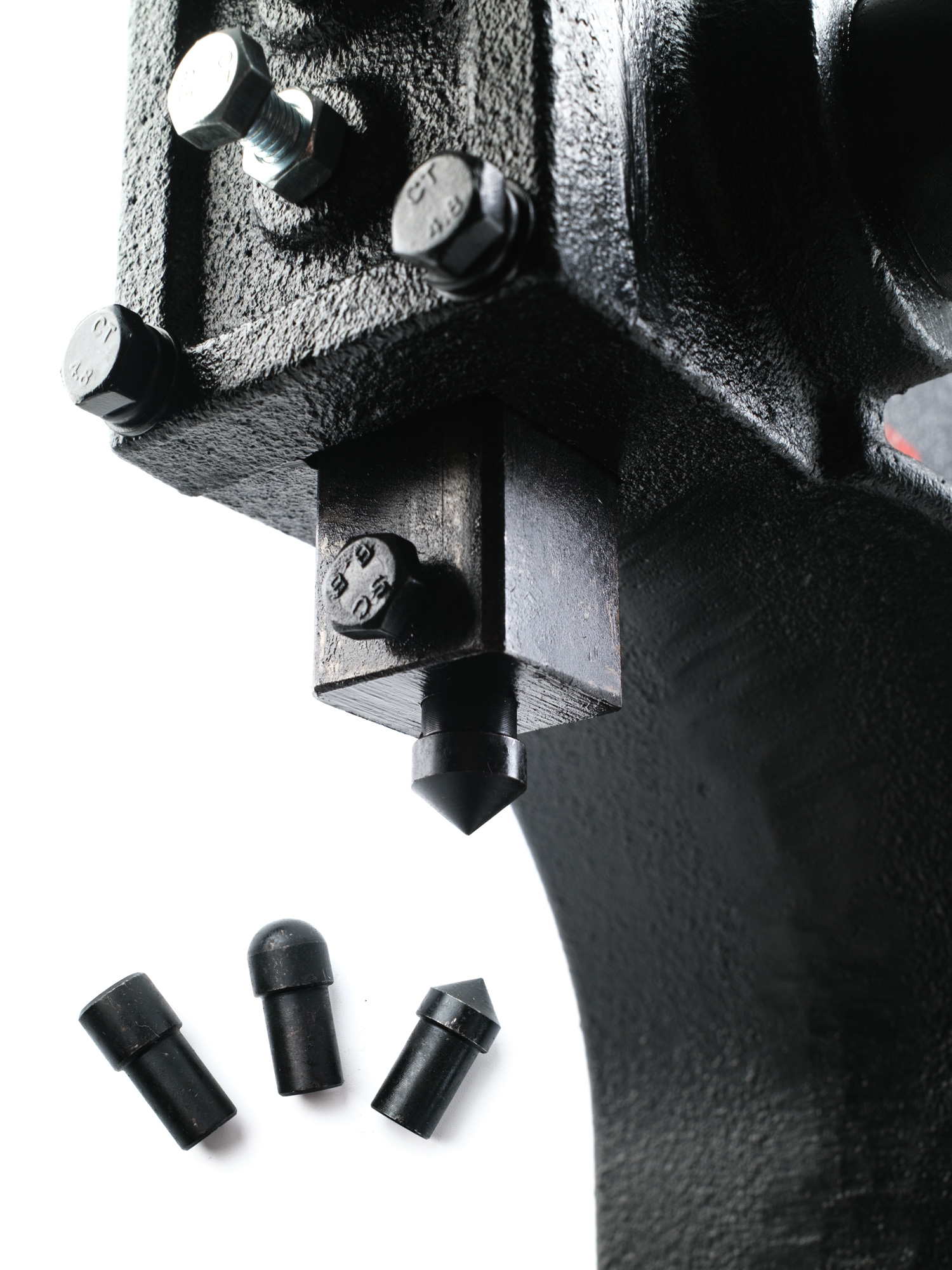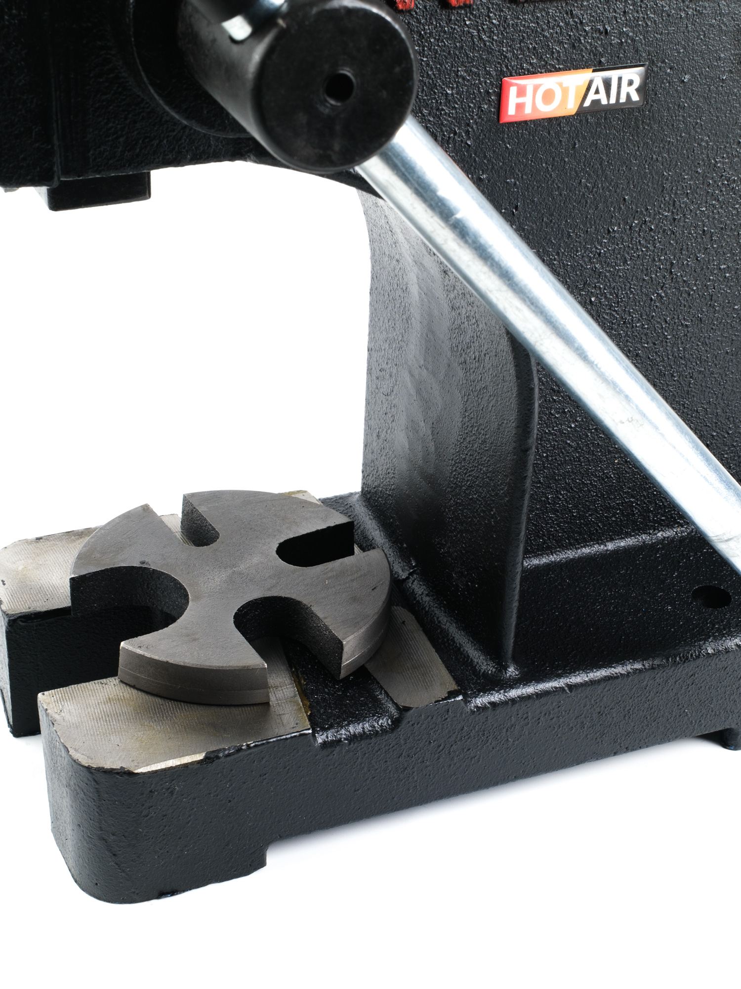 Lis je vybavený otočnou odnímateľnou kovadlinou, ktorá slúži na podopretie, fixáciu a správne umiestnenie lisovaných dielov počas montážnych a demontážnych operácií. Umožňuje bezpečné lisovanie čapov, ložísk a hriadeľov, pričom stred dielu môže voľne prechádzať otvorom bez poškodenia okolitých povrchov. Kovadlina má 4 otvory s veľkosťou otvorov 10, 14, 20 a 32 mm s hĺbkou 29 mm. Tieto rôzne veľkosti umožňujú pracovať so širokou škálou priemerov a tvarov dielov. Na konci barana sa nachádza otvor pre 10mm lisovacie tŕne (3 ks sú súčasťou dodávky) so skrutkovým zámkom.