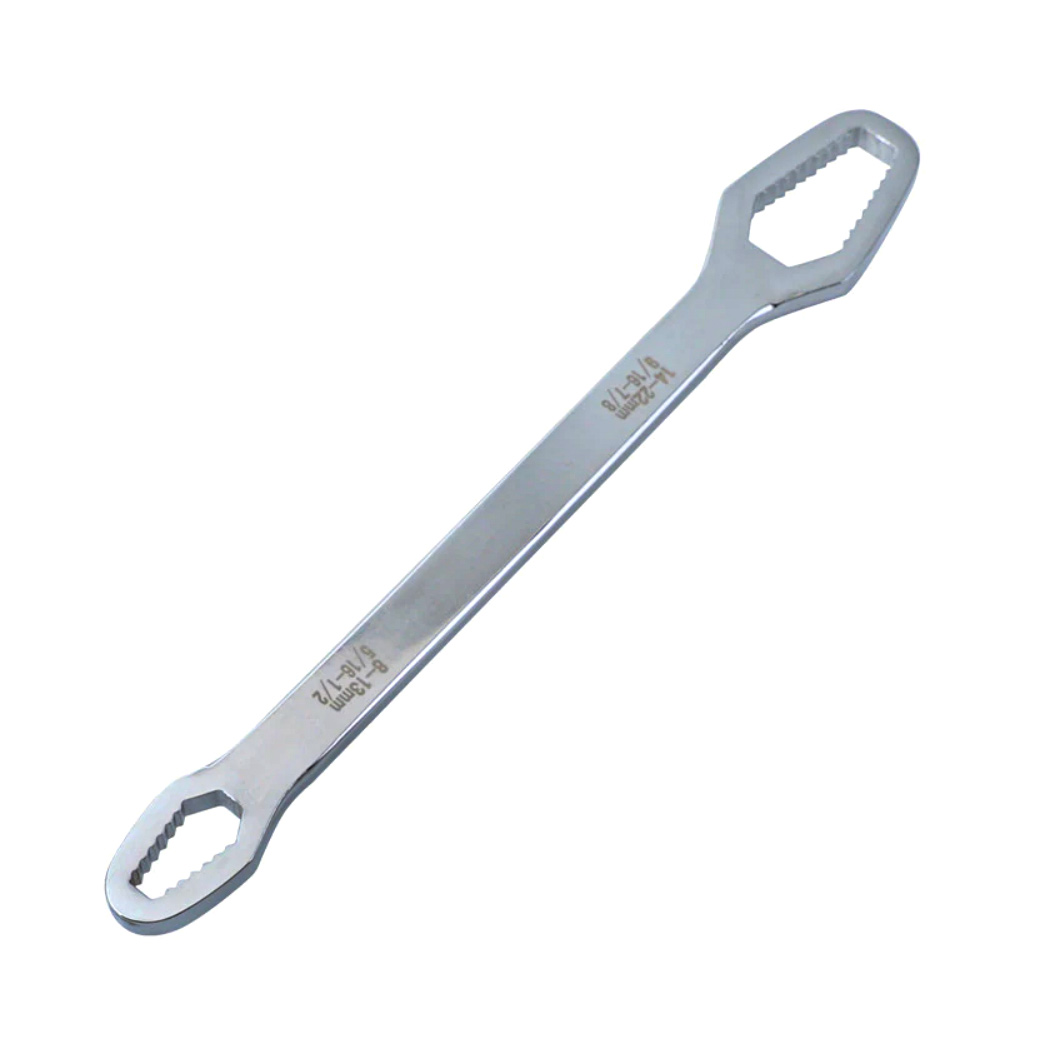 Univerzálny dvojhlavý kľúč 8-22mm (M5 - M14) pre šesťhranné matice, tento nástroj nahradí celú sadu kľúčov, ktorá zaberá miesto v taške či kufri auta a je pomerne ťažká a drahá. Vďaka nízkej hmotnosti a skladnosti je kľúč ideálny pri oprave auta, motorky či bicykla na cestách, ale je zároveň aj šikovným pomocníkom v dielni či doma, kedykoľvek potrebujete povoliť či utiahnuť maticu.