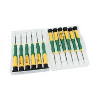 Set univerzálnych skrutkovačov pre telefóny, tablety, MP3, MP4 prehrávače a ďalšie elektronické prístroje. Súprava pozostáva z 12 kusov skrutkovačov s hlavičkou z vanádiovej ocele. Skrutkovače sú uložené v plastovom priehľadnom boxe s očkom na zavesenie.