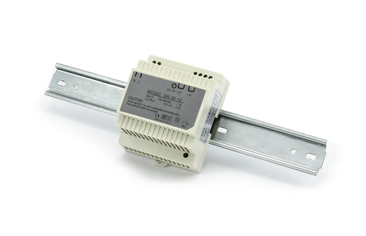 Spínaný modulový priemyselný zdroj S-60-12 AC230 / DC 12V 5A pre maximálny príkon 60W určený pre vstavanie, či do rozvodných skríň.