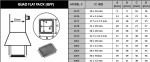 Rozmery výduchu alternatívnych dýz Y1125, Y1126, Y1127, Y1128, Y1129, Y1215, Y1261, Y1262, Y1263, Y1264, Y1265 viď tabuľka: