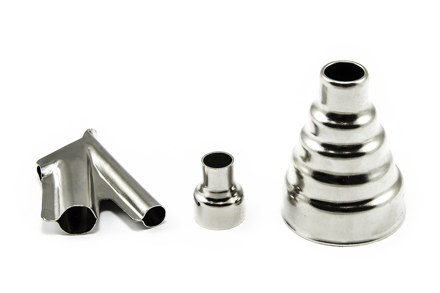 Univerzálna teplovzdušná dýza na zváranie plastov (prútov z ABS, PP, PE, atď) pomocou klasických teplovzdušných pištolí s výstupom priemeru - 33mm. Dýza sa skladá z troch rozoberateľných častí. Vhodné pre opravy prasknutých plastov - napríklad nárazníkov, záhradného nábytku, sudov, apod.