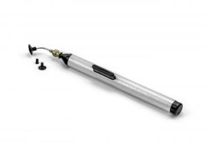 Vákuová pinzeta s kompresorom je dodávaná s tromi gumovými nástavcami podľa toho, aké veľké a ťažké súčiastky potrebujete držať - veľký s polomerom 10 mm pre súčiastky do hmotnosti 40 g, stredný s polomerom 7 mm do 18 g a malý 3 mm do 3 g. Sací príkon kompresora je 20 - 25W. Na boku prístroja je úchytka pre odloženie sacieho pera.